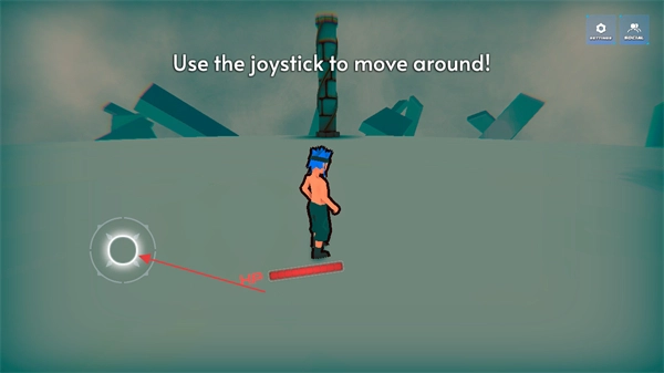 进入游戏后,根据提示操作:点击屏幕左下方的虚拟摇杆(Use the joystick to move around!),以此来控制角色移动。