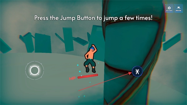 当需要跨越障碍时,点击屏幕右侧的跳跃按钮Press the Jump Button to jump a few times!,这样就能让角色完成跳跃动作。