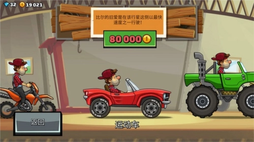 升级发动机时会发出逼真的涡轮声效。7、这是一款趣味平衡类游戏,游戏全程就是一位面无表情的大叔驾驶着那辆惹眼的红色汽车,在各种崎岖不平的道路上一路前行。