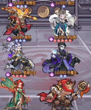推荐理由:游戏里妖族的阵容配置比较完善,战斗加成也不低;战斗过程中,妲己先给后排提升伤害,然后申公豹给前排加护盾减伤,接着牛魔王上减防效果,最后后排三位输出就能直接解决对面;要是输出够但前排扛不住,可以把后排输出的一个位置换成铁扇公主,这样能提高队伍的容错率。
