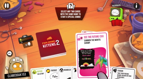 玩家一旦抽到爆炸卡牌,就会有出局的风险,不过要是能使用拆弹卡牌,就能解除这场危机。