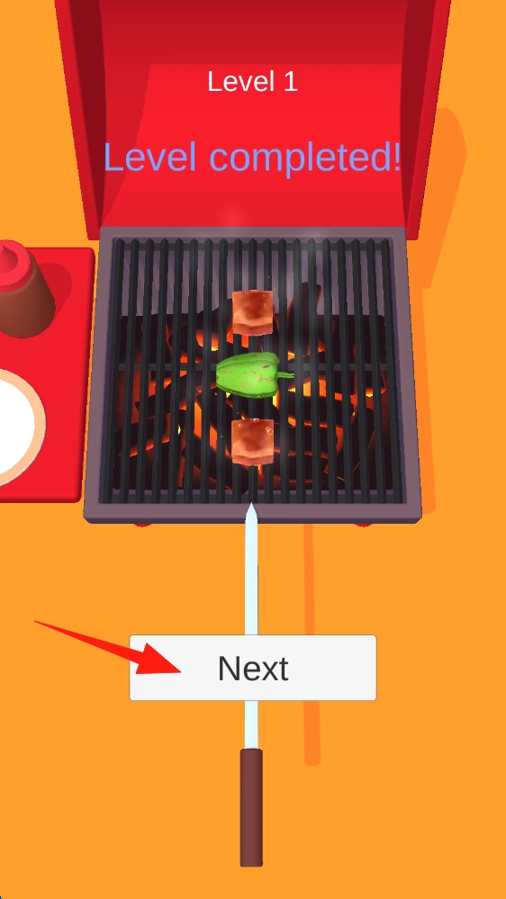 完成Level-1后,点击Next按钮就能进入下一关继续烧烤挑战,点击该按钮即可进入下一步。