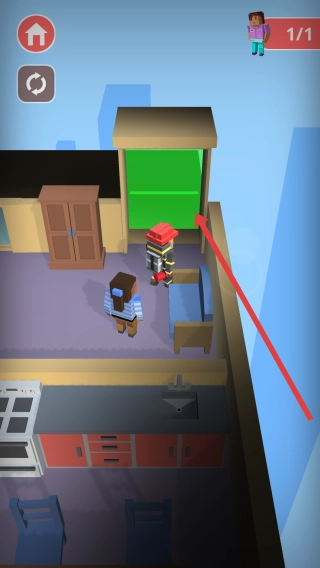 在楼层内扑灭明火后,带领受困人员前往绿门,保障大家安全撤离危险区域,完成本楼层的救援任务以推动游戏进度。