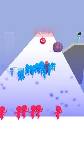 通过滑动屏幕来操控队伍移动,队伍会自动吸纳和自身当前颜色一致的队员;若触碰到不同颜色的对象,就会造成队员掉落,一旦所有队员都掉光,游戏便宣告结束。