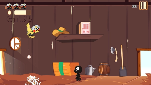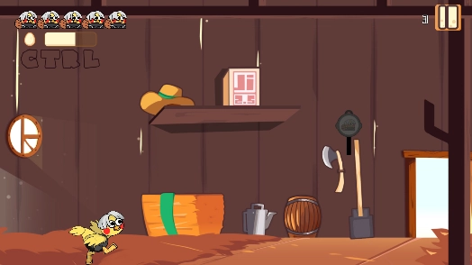 在关卡推进过程中,点击“开始游戏”按钮后,游戏画面里就会出现名为小鸡的游戏角色。