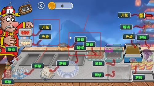 厨具设备种类丰富可选,每种工具都能提高烹饪效率或解锁新菜品,加快成长速度实现快速扩张。