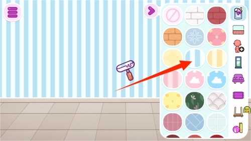 除了人物装饰,还能点击墙面进入背景编辑界面,平台提供海量墙纸素材,且支持对这些素材进行自由缩放和旋转操作。