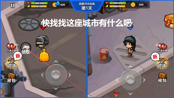 在城市里四处搜寻,收集装备、金币这类物资,只需点击拾取按钮就能获取资源,以此为后续的生存与战斗做好准备。
