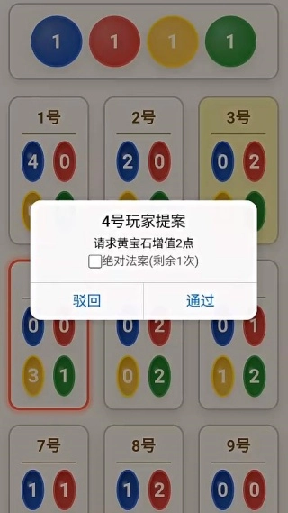 游戏进入中后期,得时刻留意所有宝石的价值波动以及对手的持仓情况,要依据实时局势的分析,才能最终判断是否通过关键法案。