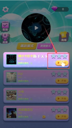 选择模式的操作步骤为:于主界面中点击跳跃模式或者滑翔模式,随后点击开始按钮。