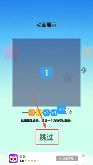 观看教程:在动画展示界面点击跳过长条教学。