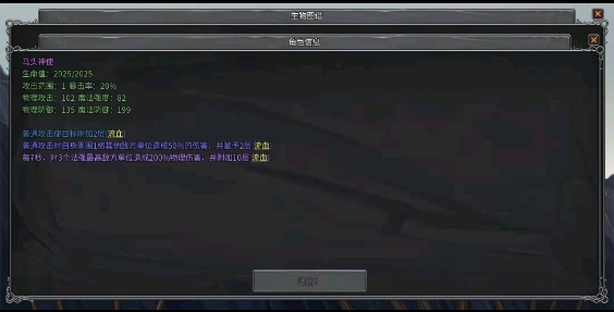 马头神使的三件套组合(狼狗、莽牛、马头神使)一旦集齐,基本就能稳定发挥了。这套装备赋予马头神使高额流血效果,使其输出能力极为恐怖——斩铁提供穿透与冷却缩减,锯齿剑兼具流血与吸血特性,髅之戒则能增加攻击力,且每击杀一个生物就会召唤骷髅士兵。只要让马头神使先处理几个低级单位,场上局势便会立刻扭转:召唤出的骷髅士兵属性不错,不仅自带死亡尸爆技能,濒死时还能复活并恢复70%生命值,堪称免费又实用的工具人。