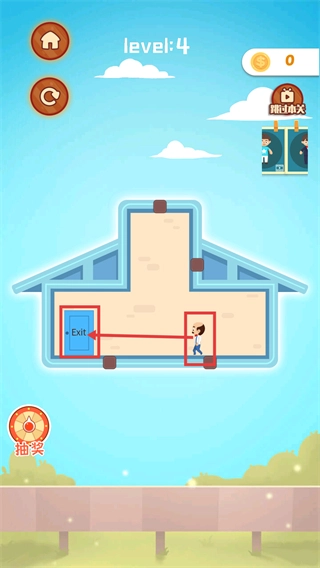 在【level:4】关卡中,先留意界面里的机关以及【Exit】出口的位置,规划好通关的路线。
