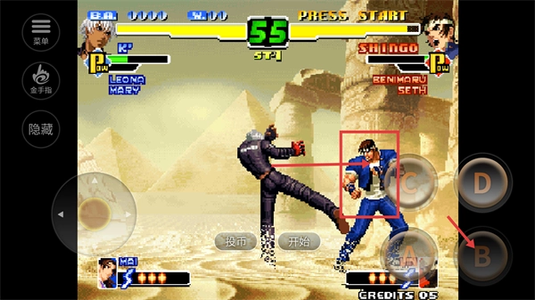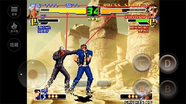 当血量显示为【34】时,按下【ABC】键即可激活反击模式,在此模式下能够无限制地释放超必杀技,以此来扭转当前的战局。
