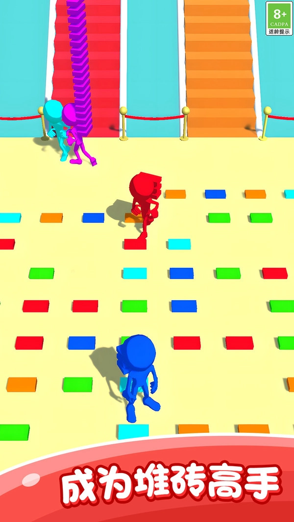 在游戏里,玩家得收集颜色相同的砖块,用这些砖块来搭建只属于自己的梯子。