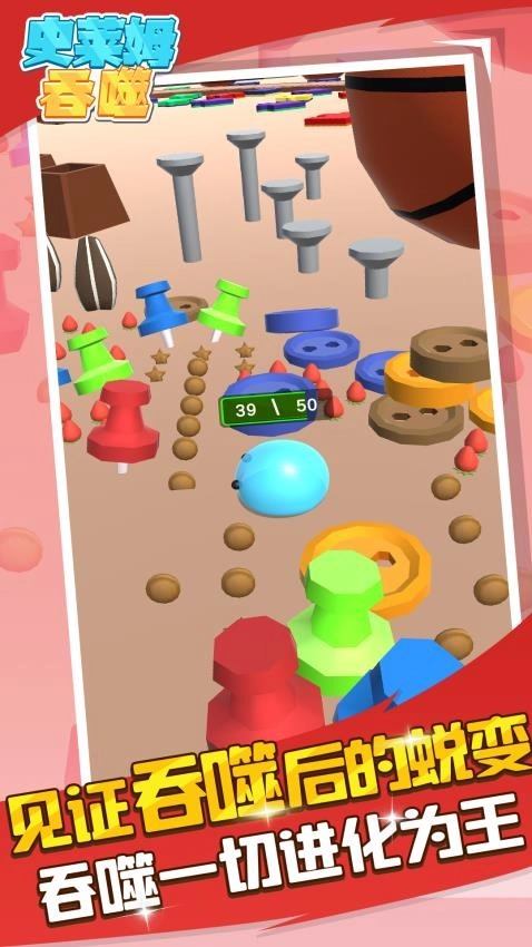 《做个小吃货》版是一款轻松有趣、玩法魔性的休闲益智游戏。玩家在游戏里将化身一只软萌的史莱姆,通过持续吞噬周边的各类物体来逐步成长壮大,最终目标是成为史莱姆之王。游戏操作简便易上手,却又充满挑战性,能让你体验一场既欢乐又刺激的吞噬冒险之旅。