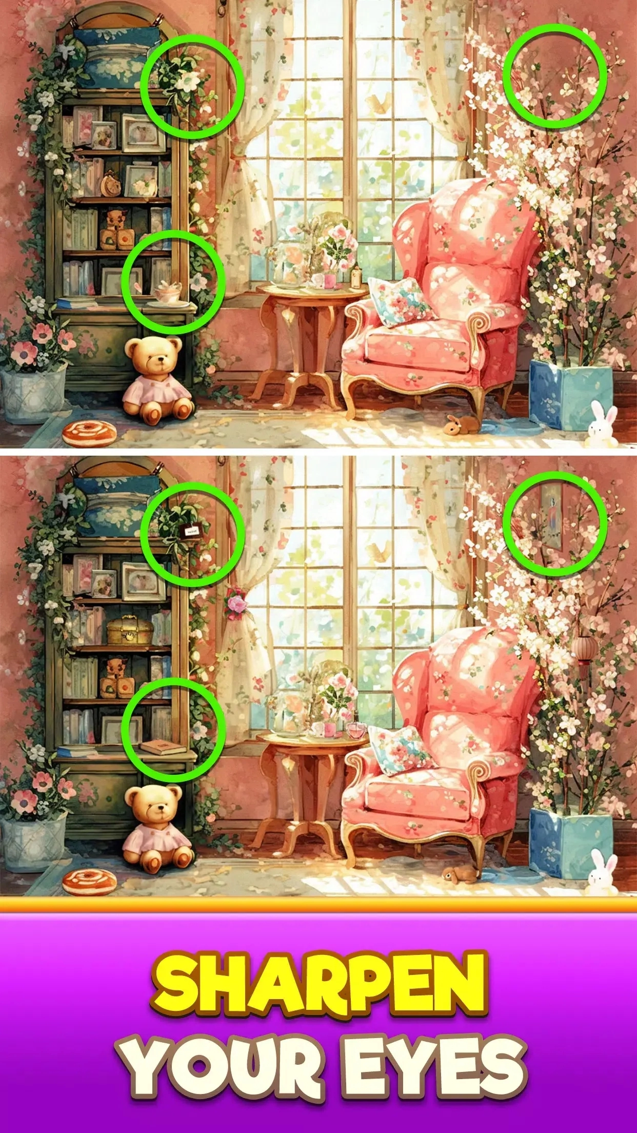 找不同梦想之家(Differences Dreamy Home)是一款精致温馨的休闲益智游戏,玩家可通过寻找差异的方式重建理想家园。游戏画面高清细腻,呈现多个家居场景的微妙差别,能让玩家在轻松愉悦的氛围中锻炼观察力与专注力。