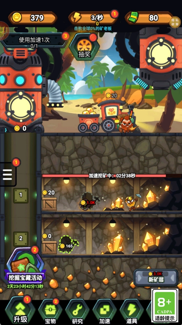玩家能够借助完成任务与获取资源,来逐步提升矿岛各类设备和设施的等级。