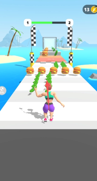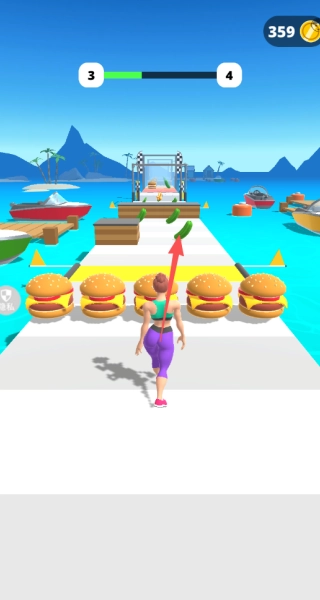 跑道上的食物分为低热量和高热量两种,角色吃下低热量食物会变瘦,吃下高热量食物则会变胖,体重会对后续挑战的难度以及策略选择产生影响。