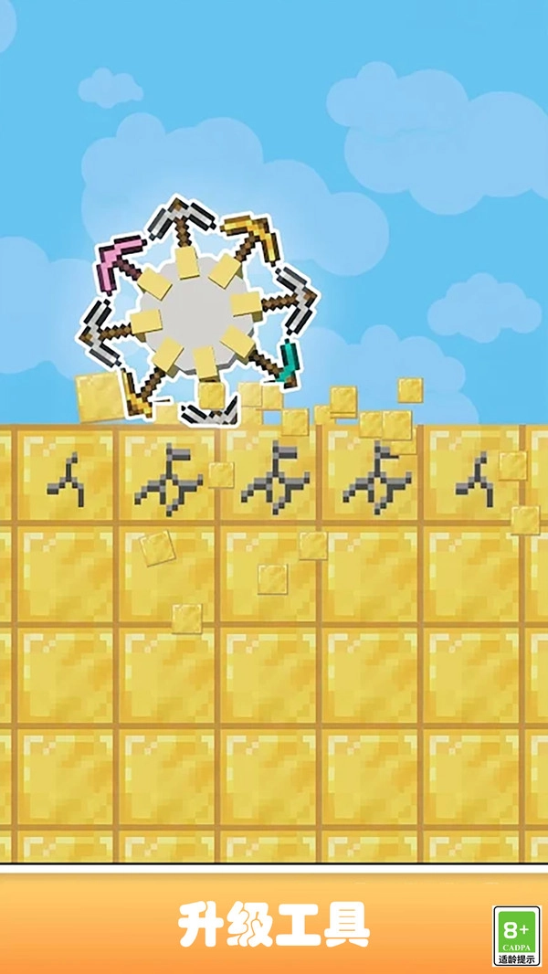 点击屏幕来操控镐头的朝向,精准敲碎目标方块以获取宝石。