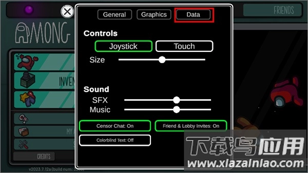 2、在设置面板里,找到右上角的data选项并点击它;