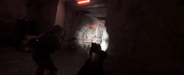 取消传统UI界面,玩家需通过机械瞄准具估算弹道,感受真实后坐力与视角晃动。动态天气(暴雨、沙尘暴)影响武器精度,黑暗环境需依赖战术手电或夜视仪。