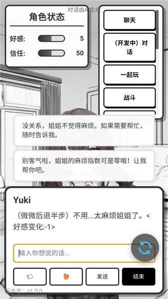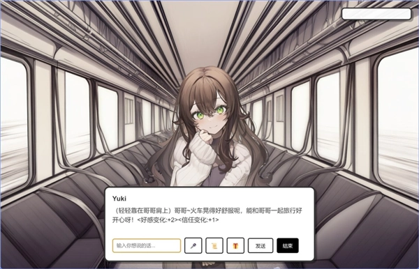4、妹妹Yuki来了,我们可以与她进行对话聊天,了解她,对话可以自己输入,也可以选择游戏给你的选项。