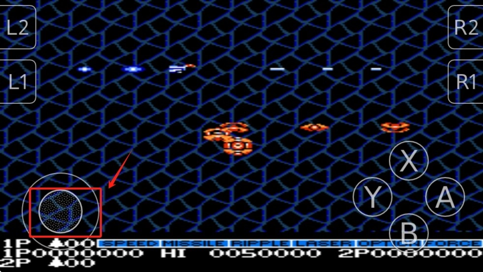 1、在游戏主界面,用虚拟摇杆移动光标至“1 PLAYER”,按“B”键确认开始游戏。