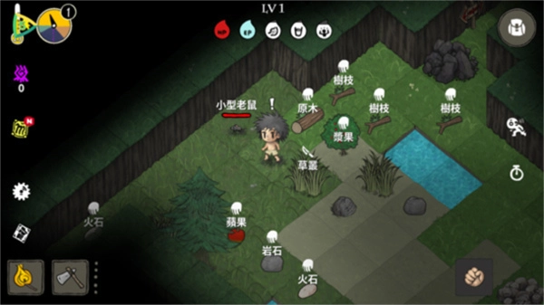 4、通过点击式来进行移动来收集道具,食物和装备等;