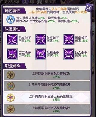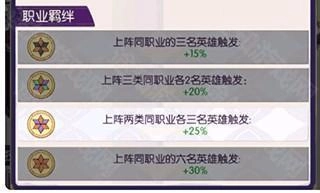 进入主楼层后,点击左下方的“职业羁绊”选项,即可查看本游戏战斗的核心机制,其中涵盖角色属性、队伍属性以及职业羁绊这几个关键部分。