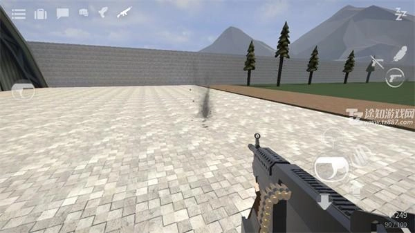 4、点击右边“手枪”按钮拿枪,可以让角色切换到持枪状态,中心用于开枪,+号可以新增靶子角色。