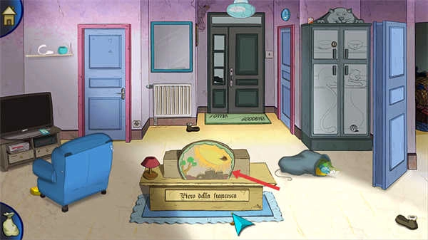 当你在房间里看到橱柜门时,点击它就能打开橱柜,看看里面有没有可以收集的物品或者线索,这样能帮助推进游戏进程。