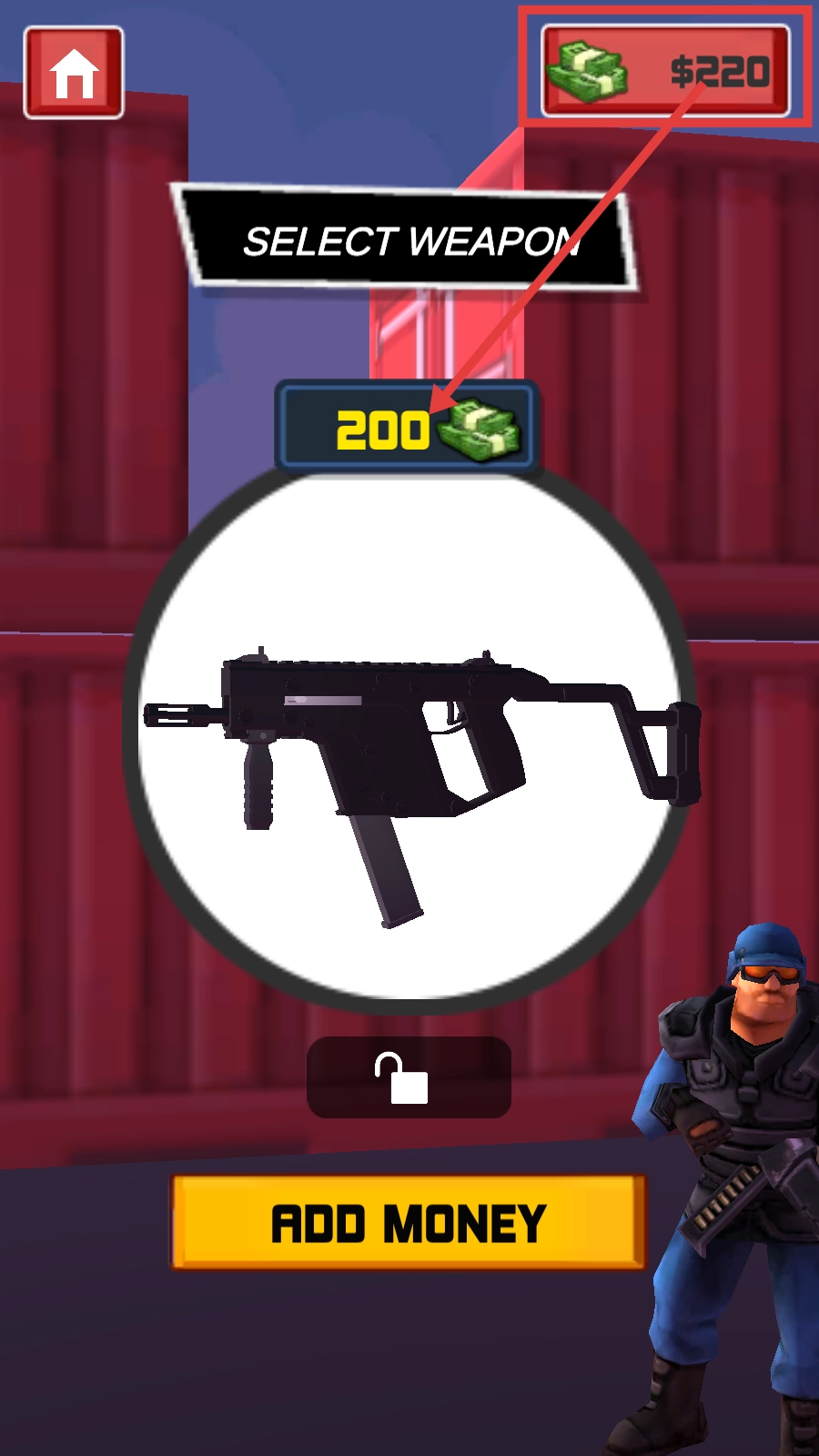 在武器选择界面,你可以花费【200】金币来解锁新武器,借助金币资源增强战斗能力,从而为任务7的战斗做好准备。