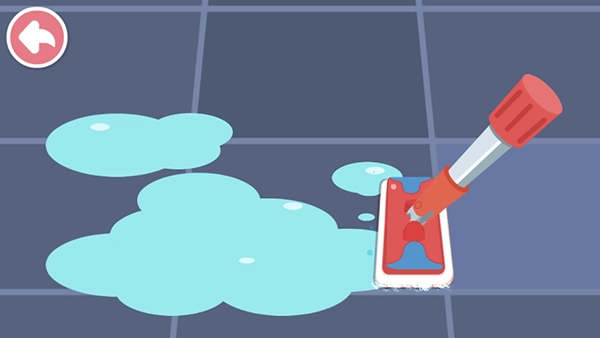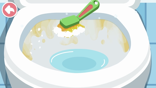 小编拿卫生间的清洁工作来举例,进入相关场景后会出现一段有趣的小动画,目的是吸引宝宝的注意力。