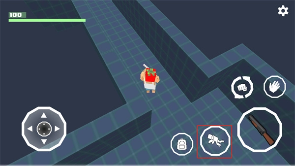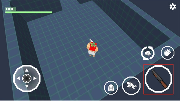 启动全民笑斗僵尸这款游戏,借助游戏界面左下角的摇杆按钮完成角色移动操作。
