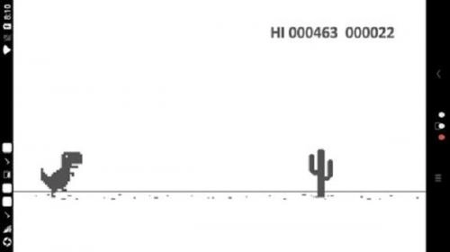 在没有连接网络时直接打开 Chrome 浏览器,在地址栏随便输入一个网址,你就能看到之前提到的那只小恐龙了。