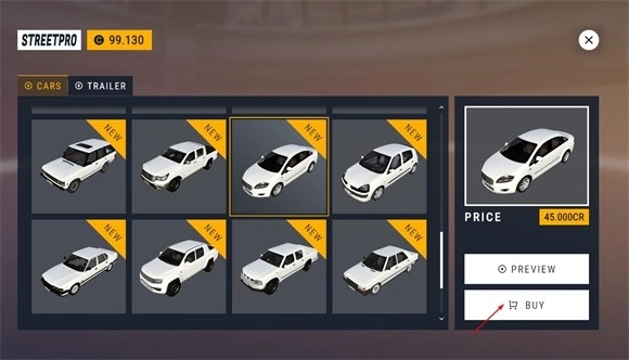 3、点击你喜爱的车辆,接着选择右下角的“buy”按钮,即可消耗金币完成解锁。