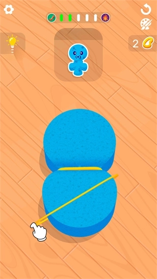 3、依据要求对海绵进行捆绑操作,通过持续调整其形态,只要最终完成任务目标就能顺利通关。