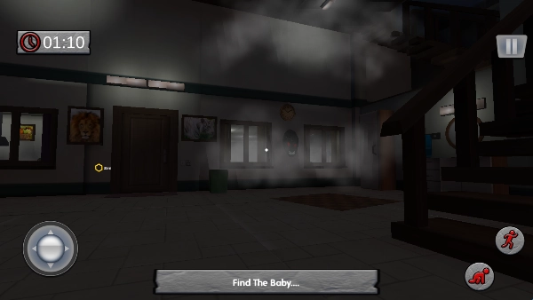 游戏开始了,在这里你需要find The Body,找到一个身体。右侧的小人按钮图标分别对应蹲下与跳跃功能,左侧则是用于控制移动方向的轮盘按键。