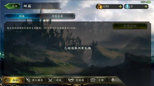 2、邮箱:用于领取游戏活动礼包,通过领取记录可查看你已领取过的礼物。