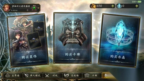 商店里可以买到装饰、卡包和水晶。装饰主要是购买不同类型的卡背和主站者造型,购买时需要消耗金币和对应的水晶。