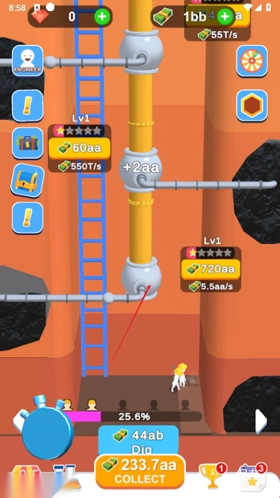 闲置油井游戏内购版(com.idle.oil.well)属于模拟经营类游戏,玩家会踏入一片满是挑战的沙漠天地,探寻一处隐秘的油田,借助搭建与升级设备的方式来挖掘地下蕴藏的巨额财富。在这款游戏里,你能感受从无到有,一步步改进设备、增加产量,最终成为沙漠经济领域的领军人物。