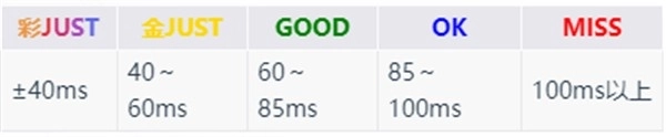 2、判定类型包括:彩JUST、金JUST、GOOD、OK以及MISS。