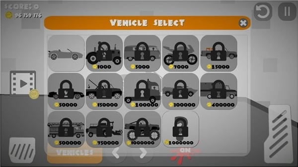 6、所有车辆都能够单独解锁,不需要按照顺序购买,只要金币足够,就可以直接解锁最高级的车型并马上使用。