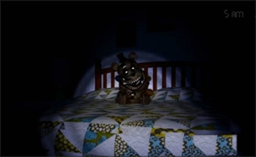 首先,这款游戏的场景并非大家熟悉的Freddy披萨店,而是一间陌生的屋子;主角也换成了一个被困在屋内的熊孩子,玩家需要做的依旧是帮助这个熊孩子存活到早晨6点。