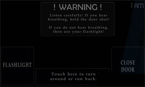 手机版操作简介:游戏中玩家查看房门是需要双击要查看的地方才能去,听到声音时点右边的框框关门,反之点左边的框照明,返回和查看泰迪熊只要点击界面下方的白框就可以了。