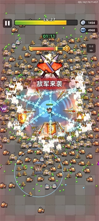 5、面对海量敌军来袭时,充分利用已解锁技能与灵活走位,体验极致爽快的割草战斗快感。