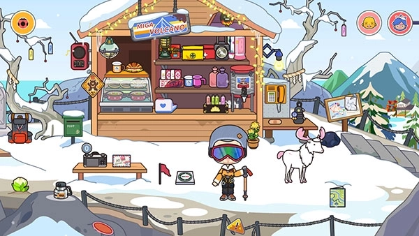 2、目前所在的场景是火山旁的小型商店,界面右上角有个小瓢虫图标,点击该图标就能回到主地图。