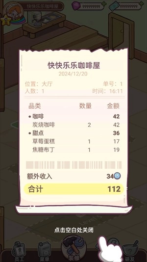 利用赚取的金币和资源,购买各种装饰道具和家具,打造个性化的咖啡店。
