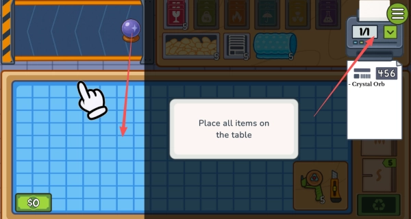 1、进入游戏后,你需要按照手指的指引,把物品拖到桌子上。